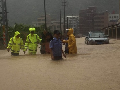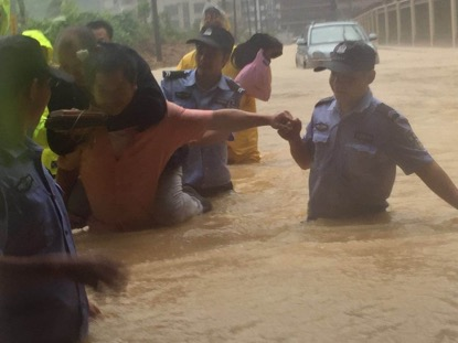 在阳江,阳西警方组建一支80人的应急救援分队,分赴沙扒、溪头和程村镇等重点镇开展抢险救援工作,在溪头镇石港村转移2名近百岁老人。