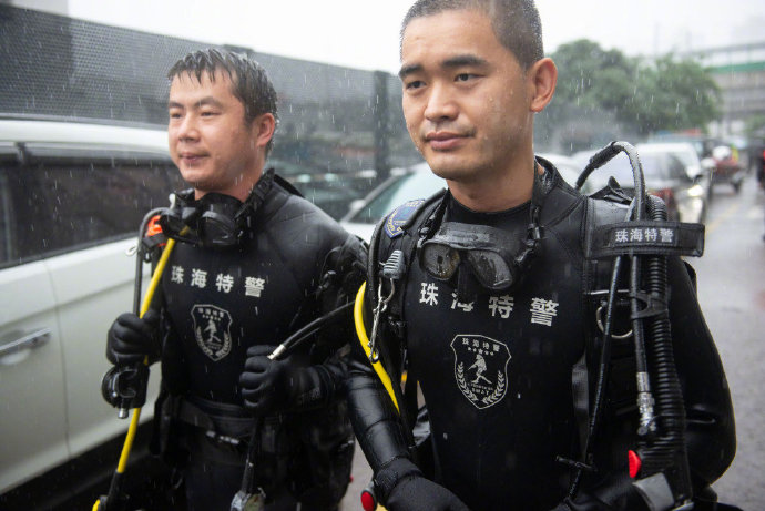 5月27日,珠海香洲,暴雨如注,一场防御超强台风的演练在狂风暴雨中展开。当天上午,珠海公安紧贴实战,以2017年超强台风“天鸽”登陆导致各类险情为模拟背景,开展防汛防风应急演练。多警种快速反应、密切配合,顺利完成受困群众安全转移安置、现场交通疏导管控、道路路障清除、抽排积水、潜水作业等科目的实战检验。