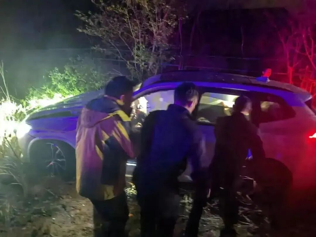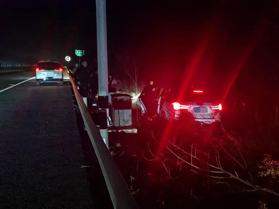 此时正值春运高峰,高速公路上车流较大,夜间能见度低。周志宏、林桂明、李炳良、陈保泉四名同志立即将警车停在应急车道,打开警灯、开启警报和拨打救援电话等,迅速翻越护栏开展救援,第一时间将事故车辆上的5名大人、小孩转移至安全区域,细心安抚他们的情绪,并在事故车辆周边设置安全警示标识,在确认无人员受伤后,终于松了一口气!