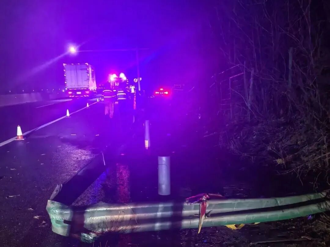 2月14日大年初五晚上11时45分,在许广高速衡阳段出现惊险一幕,一辆小轿车突然冲出防护栏,司乘人员伤势不明!