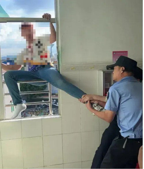 近日,在广州市白云区第三人民医院最小应急单元的迅速救援下一起患者轻生危机被成功化解。当天,在医院急诊科医护人员发现有一患者自行离床到公共座椅睡觉,于是建议其回床休息,但该患者突然情绪失控,跑到门诊楼五楼,出现了轻生的迹象。