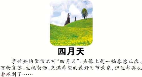 李世全的微信名叫“四月天”,头像上是一幅春意正浓、万物复苏、生机勃勃、充满希望的最好时节景象,但他却再也看不到了……