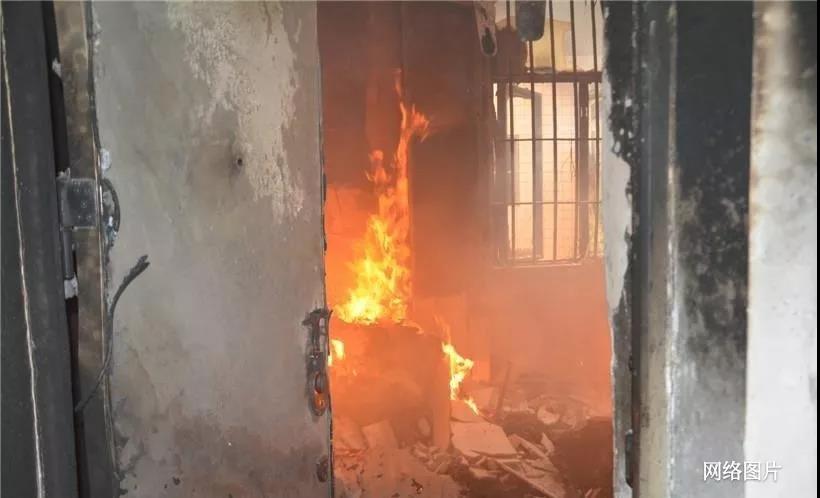只见房间内杂物正在熊熊燃烧,发出“噼噼啪啪”的声音,一个煤气瓶的瓶口正冒着火花,情况十分危急。