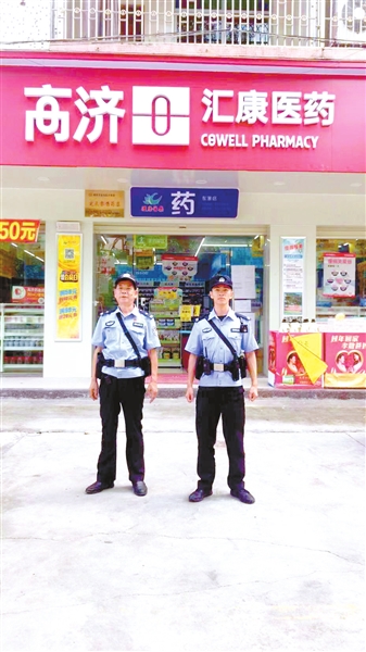 黄少波(左一)在辖区执勤(资料照片)。