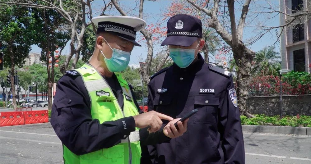 “看粤康码,一定要留意粤康码上的时间会不会变化,如果不会变的,那就是截图的,一定不能让他们进出。”在执勤间隙,杨岳华认真地教导一起参与执勤的新警。“这个执勤点人车流量太大了,一刻也不能放松,每辆车每个人都要排查,我怕年轻人会沉不住气。”杨岳华说,防疫是事关群众生命安全的大事,不容一点马虎。
