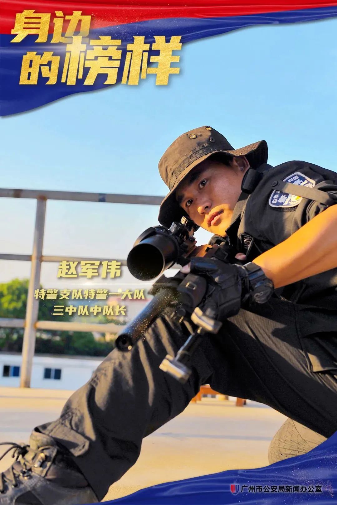 “受祖辈、父辈的影响,我从小就崇拜军人和警察,现在两个梦都圆了。”赵军伟说。2007年从部队退役后,他进入广州市公安局特警支队。次年,他成为特警支队“猎手”狙击队的一员,“要把在军营练就的技能更好地服务于社会和人民。”