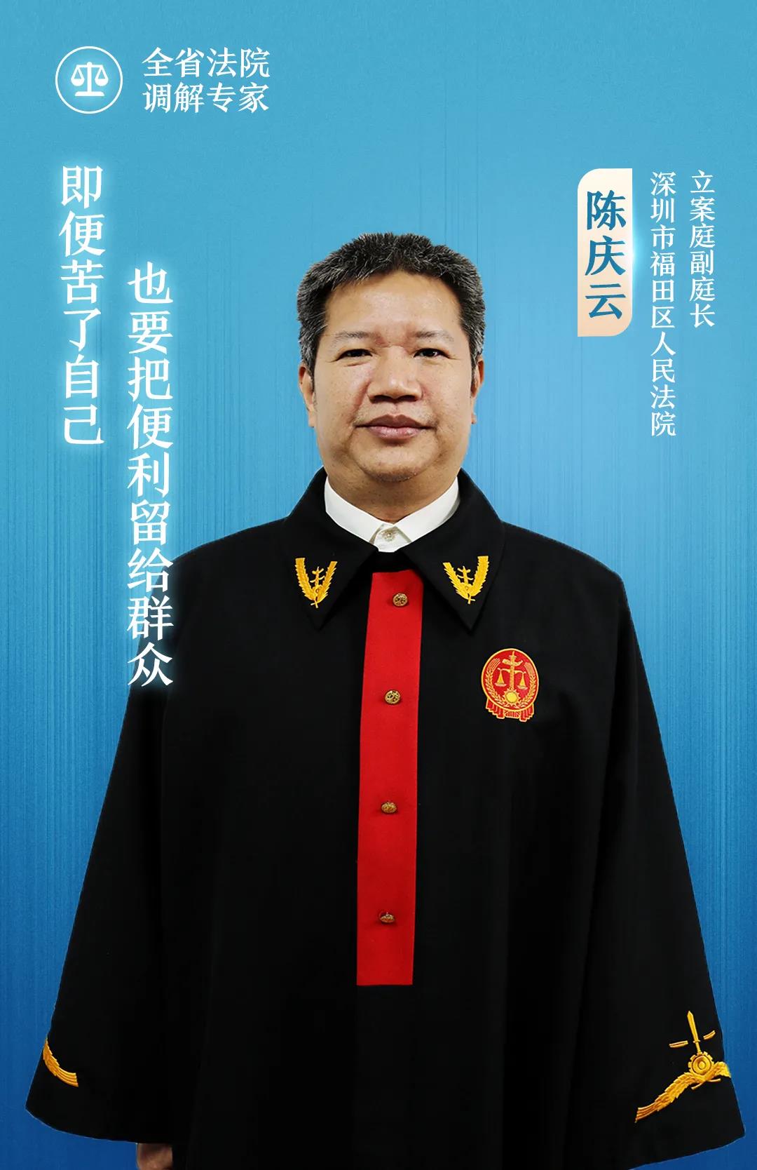 他就是深圳市福田区人民法院立案庭(诉讼服务中心)副庭长陈庆云,在法院工作29年,从事过审判、信访、诉前解纷等多个岗位,无论岗位如何变动,他的为民初心不变、为民情怀不移。