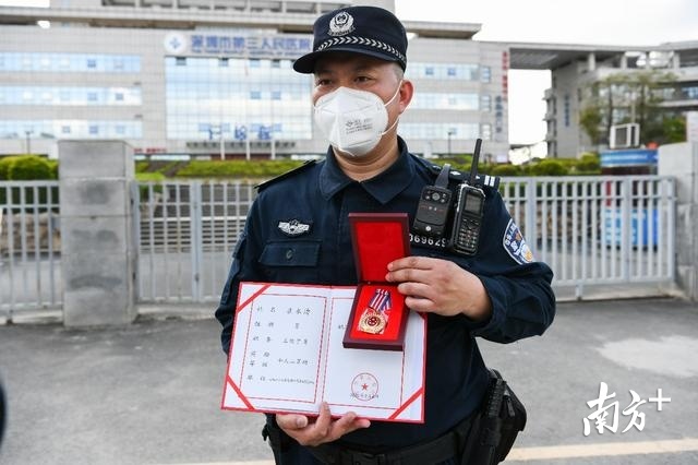 今年2月26日,广东省公安厅签署战时奖励命令,为庄永清记个人二等功。当天下午,相关领导来到深圳市第三人民医院,向庄永清颁发了个人二等功证书和奖章。第二天,刚刚获得荣誉的庄永清又一次出现在了值守现场。