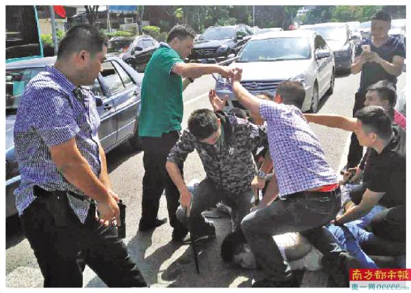 深圳市公安局龙岗分局刑警大队政委李刚(左)正在执行任务。资料图片