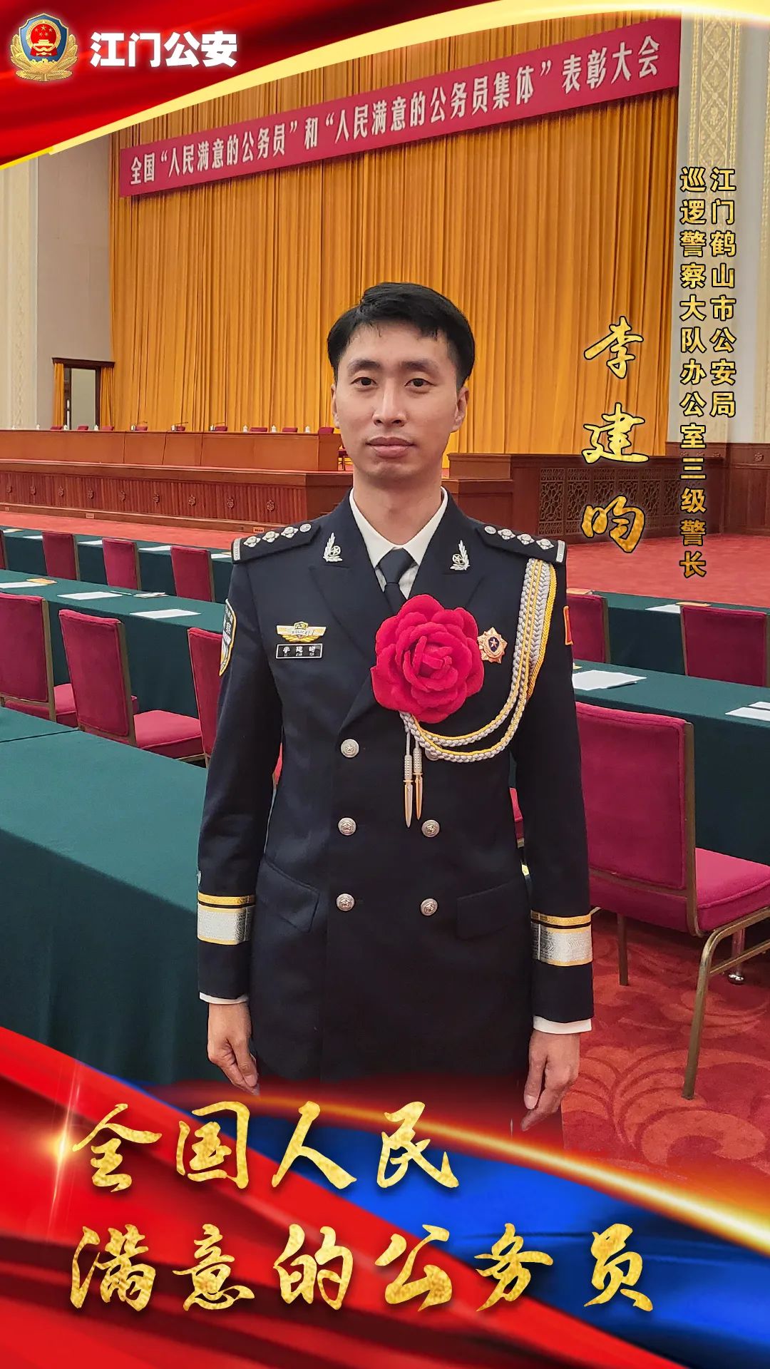 其中,广东公安系统共有2名个人和1个集体获表彰,江门公安民警李建昀获评全国“人民满意公务员”。