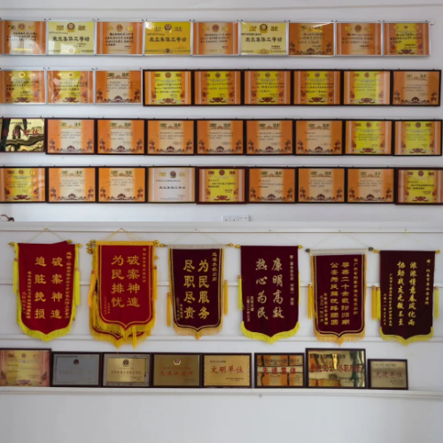 “集体三等功”“先进集体”“先进基层单位”......在阳江阳春市公安局潭水派出所的荣誉室里,两面墙挂满了获得的荣誉以及群众送来的锦旗。然而,这仅是潭水派出所建立42年来,获得的一部分荣誉。
