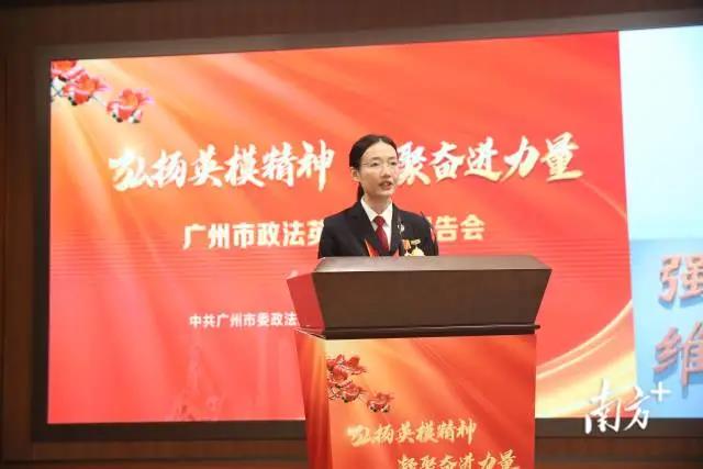 近日举行的广州市政法英模事迹报告会上,张宇筠上台作事迹报告