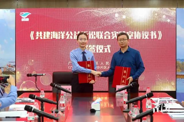 张宇筠代表广州市南沙区人民检察院(广东自由贸易区南沙片区人民检察院),与有关部门签订《共建海洋公益诉讼联合实验室协议书》