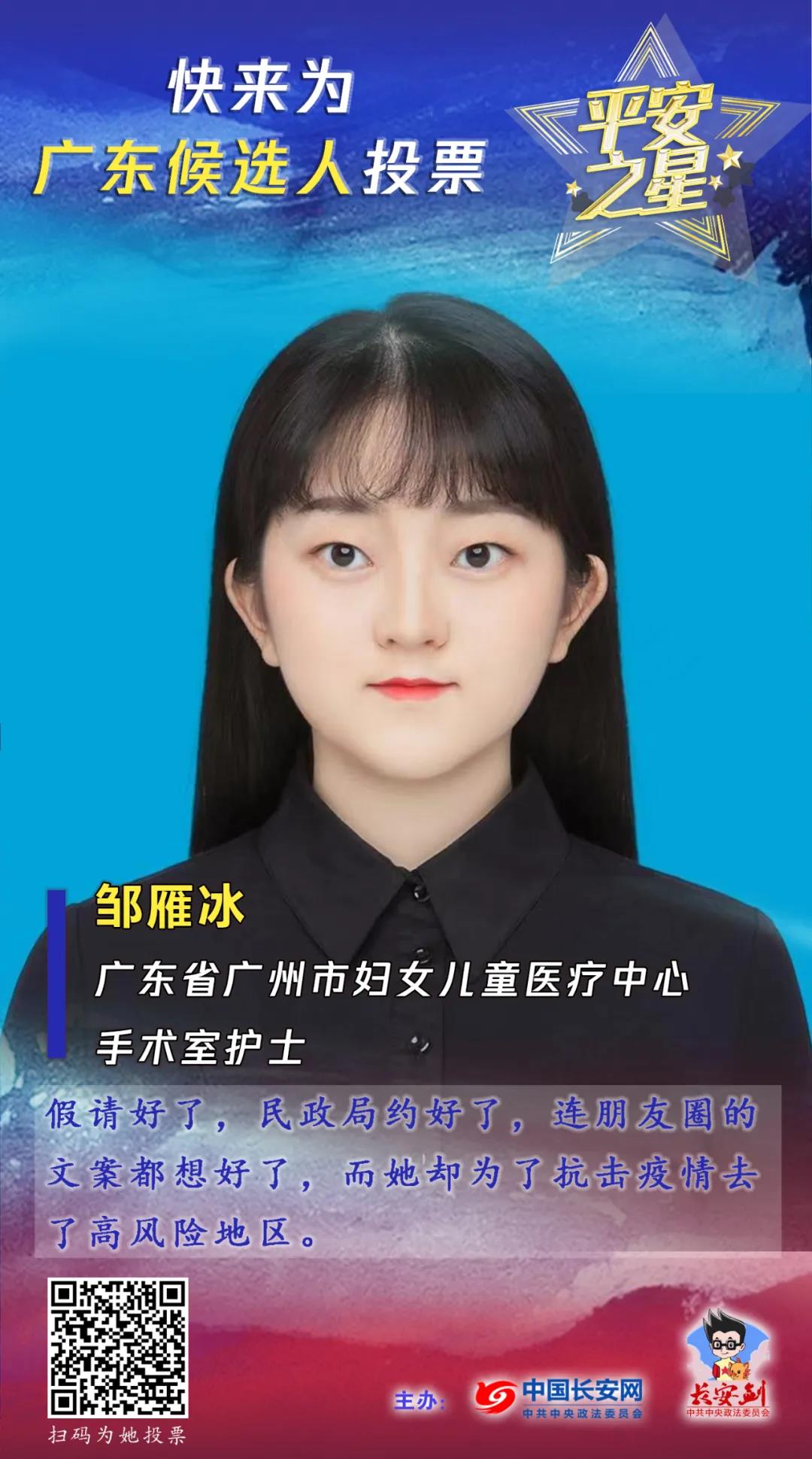 邹雁冰,“平安卫士”候选人,广州市妇女儿童医疗中心手术室护士。
