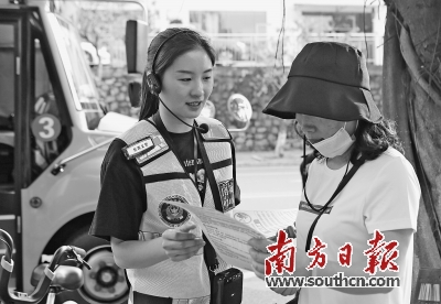 东莞义警向群众宣传反诈知识。