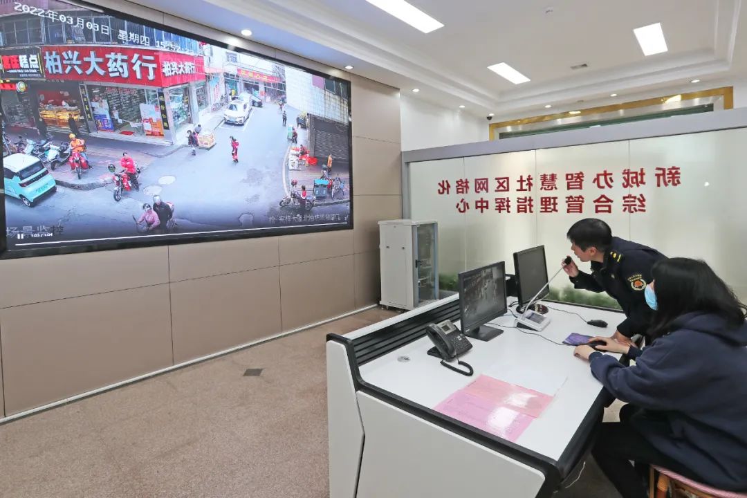 自去年以来,新城办依托智慧社区网格化管理服务平台建设,已在辖区内布设、接入了71个监控设备、42个天翼大喇叭、378个消防智慧烟感,并为留守老人安装“一键求助”装置作为试点,在需要居家隔离的人员家门口安装智能门禁和监控设备。“我们整合了‘雪亮工程’、数字城管等资源,对占道经营、乱停乱放等治理难题进行重点管控,目前监控探头主要覆盖到人员流动较大的街道、市场、小区、校园等地。如果平台‘喊话’劝导无效,工作人员将抓拍监控画面,协调城管、交警等职能部门人员到现场处置。”新城党工委副书记邹敏介绍说,新城办成立了一支由社区网格党员、城管队员、应急队员等组成的网格应急处置队伍,推动问题在网格内解决,形成发现问题、解决问题、反馈处置结果的闭环。