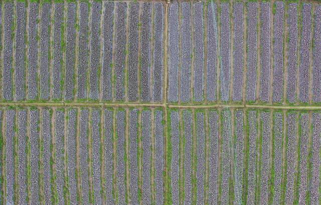 成片的黑木耳菌棒一字排开,航拍俯瞰,蔚为壮观。汪敬淼摄