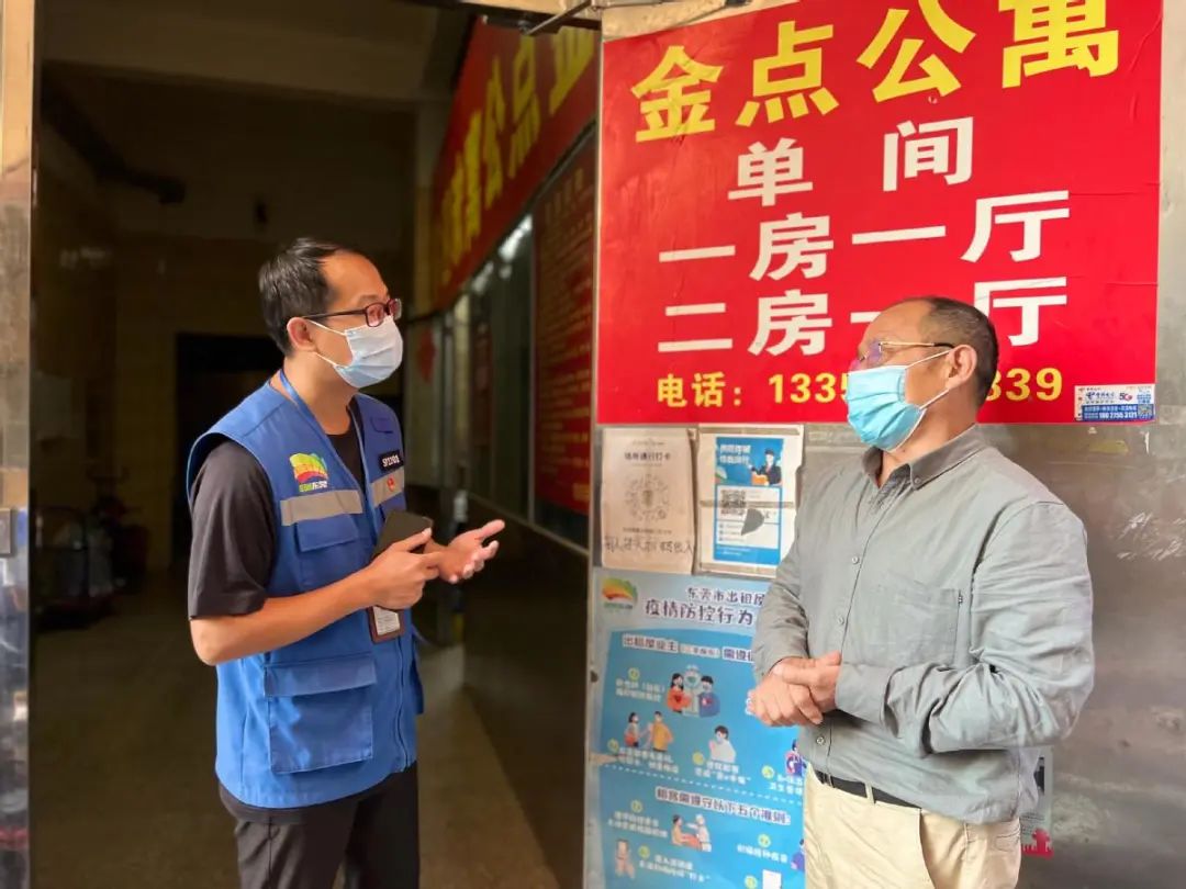 9月21日上午,在茶山镇超朗村,网格管理员叶旭田正在开展日常巡查。在一栋临街出租屋,他和同事走进一楼商铺,检查每一个灭火器、每一盏应急灯,爬上阁楼查看有无住人迹象,叮嘱店家一定要注意消防安全,绝对不能在店铺内住人。二楼以上是出租屋,叶旭田和同事检查每一层的公共消防设施,打开消防栓查看能否正常出水。