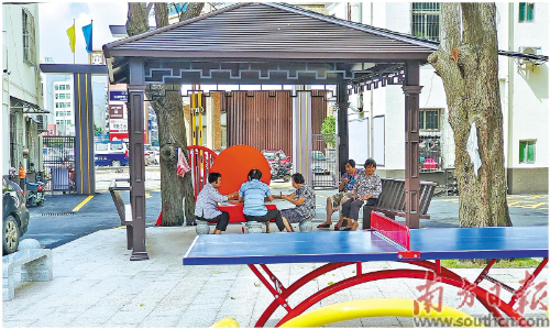小区凉亭里,居民休憩打牌,享受悠闲生活。邓建青 摄
