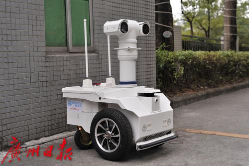 5G警用巡逻机器人,可实现红外线5米以内快速测量体温,并识别过往人员是否戴口罩。
