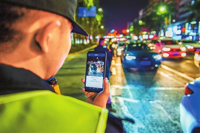 梅州民警运用“智慧新警务”夜查酒驾。张劲夫摄
