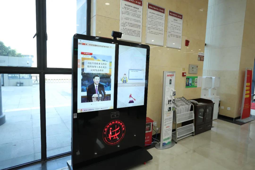 ▲“天平阳光智屏”设备天平阳光智屏,又称“人民法院新闻宣传+诉讼服务融合传播平台终端”,融合了报刊、网站、影视、新媒体,整合文图、视频、H5等全媒体形态,是人民法院开展思想政治学习和普法宣传,提供基本诉讼服务的融合传播平台。