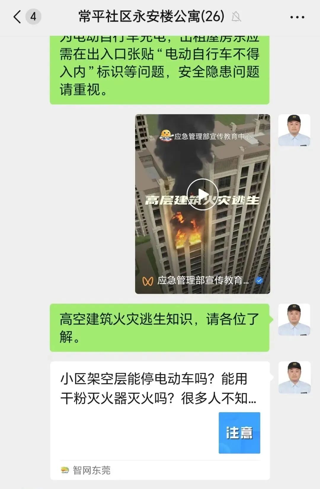 此外,常平镇智网中心还通过线上和线下相结合的方式,常态化开展整治电动自行车违规充电行为和居民火灾防范宣传教育活动,结合真实案例让房东、车主认识到电动自行车室内充电的危害性。
