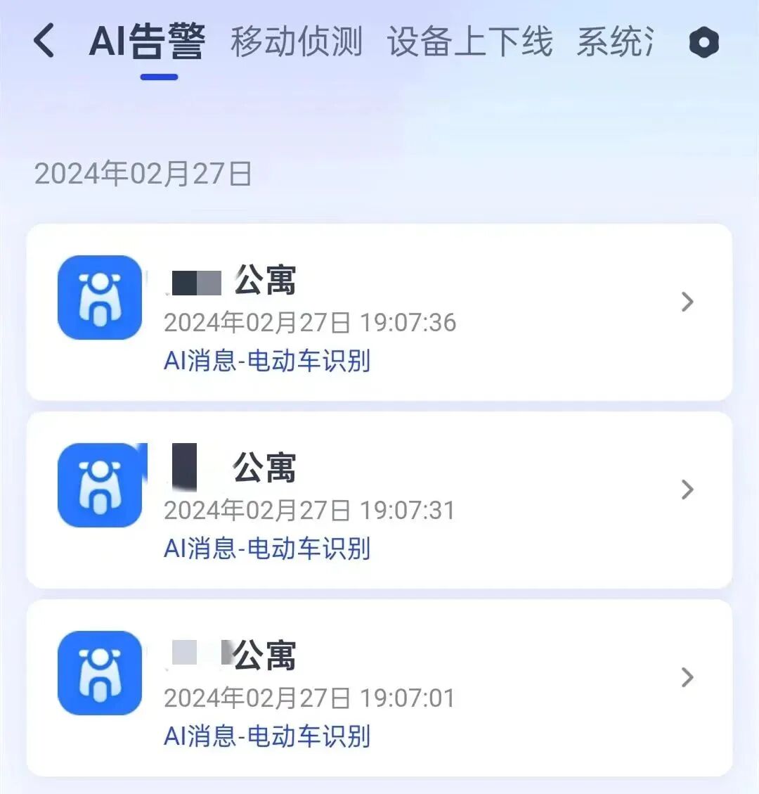 网格员只需每日登录系统查看出租屋的告警记录,若发现平台推送的实时预警,及时上报相关隐患,若在短期内重复出现告警,将其列入重点关注对象并上报到村委会和镇消防部门。截至目前,该系统监测到电动自行车电池违规入户充电报警次数71次,网格员与相关部门响应及时,有效防范电动自行车违规室内充电引发的消防安全隐患。