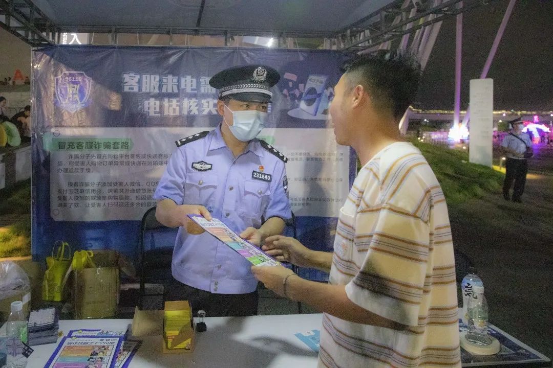 8月20日晚,市公安局、鼎湖公安分局深入肇庆新区体育中心、长利湖沙滩公园“一湖两岸”,以别开生面的“反诈摊位”形式向群众宣传七种典型诈骗类型,让反诈宣传入脑入心。