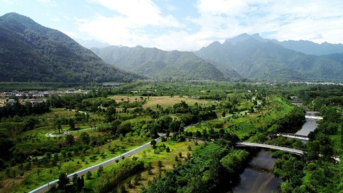陕西省西安市长安区秦岭违建别墅“群贤别业”拆除后建设的秦岭和谐森林公园。