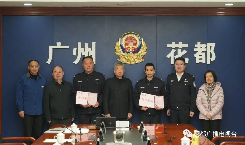 12月19日,广州市见义勇为基金会理事长蔡巍一行看望慰问见义勇为,勇救落水群众的治安员肖伟安、蓝国威,为他们颁发广州市见义勇为证书,弘扬社会正能量。