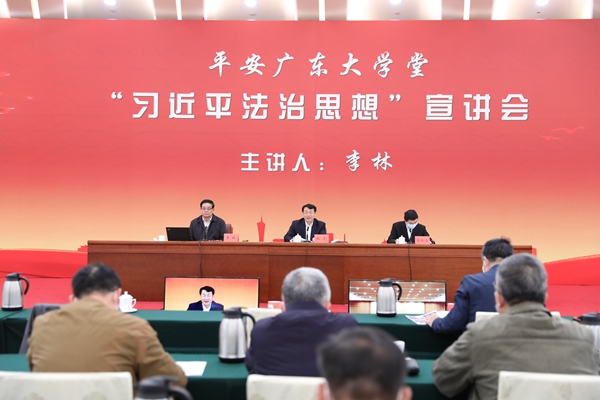 为推进我省政法系统教育培训工作系统化、规范化、专业化、常态化,全面提升我省政法干警政治修养和专业素养,省委政法委在全省政法系统组织开展“平安广东大学堂”活动。12月24日下午,“平安广东大学堂”启动暨“习近平法治思想”宣讲会在广州举行,组织全省政法干警深入学习贯彻习近平法治思想,为建设更高水平的平安广东、新利luck18(中国)体育备用网址提供思想和理论保障。